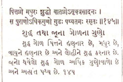 It contains an enormous wealth of minerals / proteins / vitamins. More importantly, Jaggery has great nutritive and medicinal value. It has the reputation of being a medicinal sugar and is prescribed for use in the Ayurvedic system of medicine. Ancient Medical scriptures dating back to 2500 years, states how Jaggery purifies the blood, prevents rheumatic afflictions and disorders of bile and possesses nutritive properties of high order. (Sushruta Sanhita, Chapter 45, sloka 145)